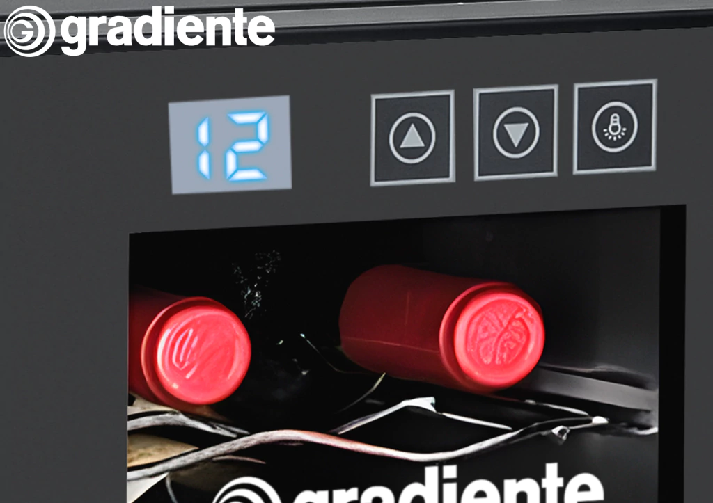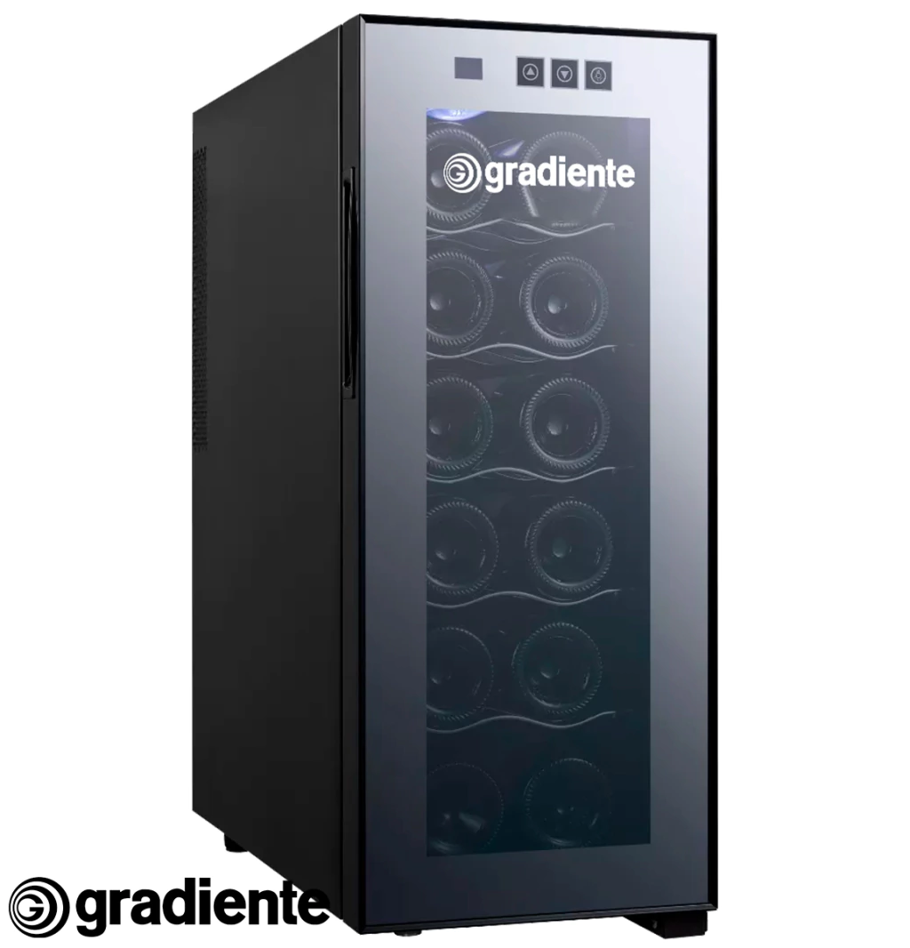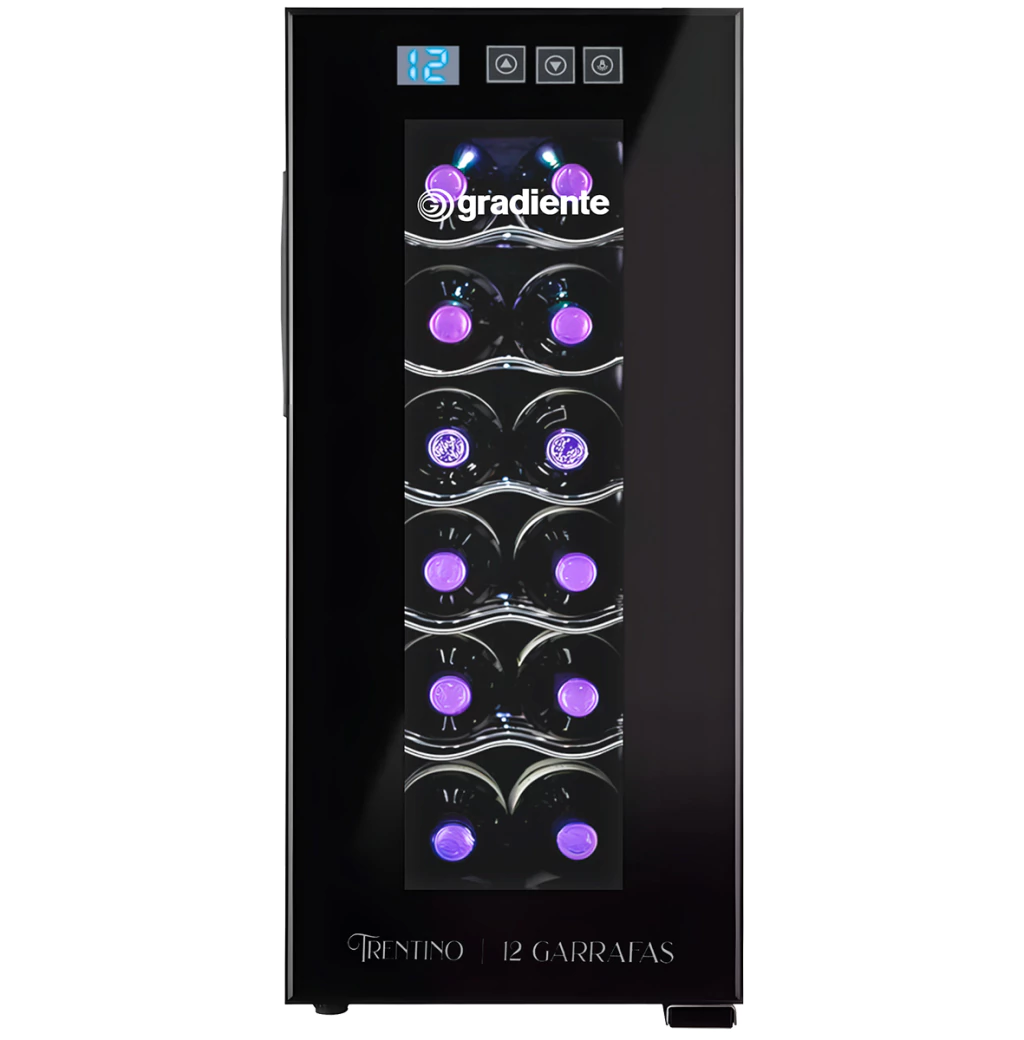 Vantagens: - Armazenamento otimizado para 12 garrafas. - Nível de ruído reduzido (38dB) e sem vibração. - Luz interna para fácil visualização das garrafas. - Controle de temperatura ajustável para manter as condições ideais de preservação. - Sistema de refrigeração termoelétrica com ventilação eólica para eficiência energética.