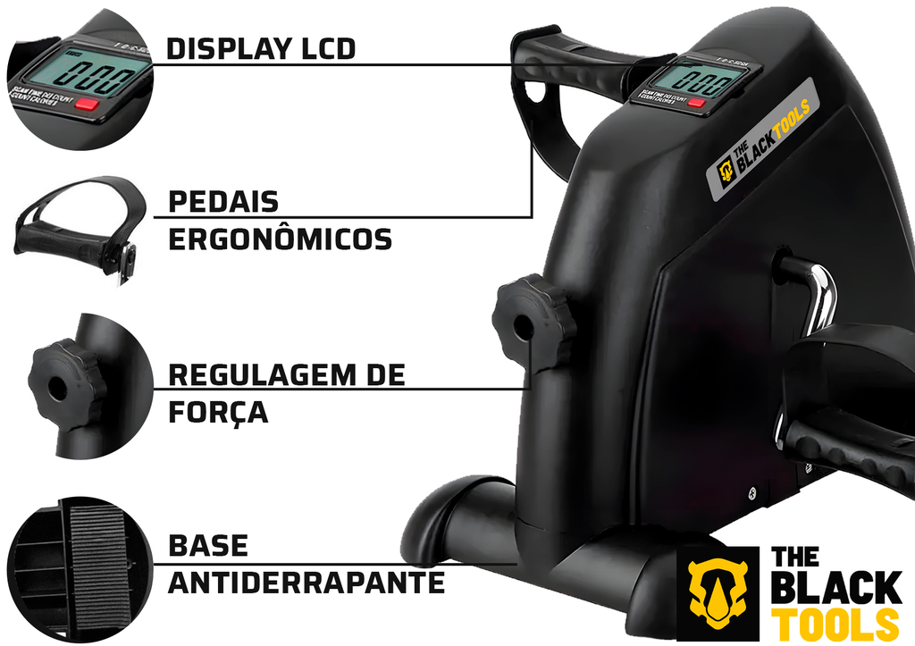 MINI BIKE ERGOMÉTRICA COM MONITOR LCD PARA EXERCÍCIOS DE PERNAS E BRAÇOS RESISTÊNCIA AJUSTÁVEL FMB1000 - The Black Tools