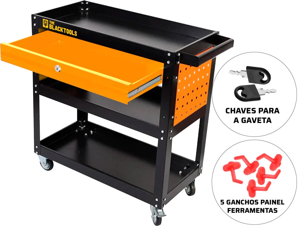 - Design Ergonômico: Este carrinho apresenta um design ergonômico que facilita o acesso às suas ferramentas. Além disso, possui uma gaveta espaçosa para guardar itens de valor e pequenas peças organizadamente.