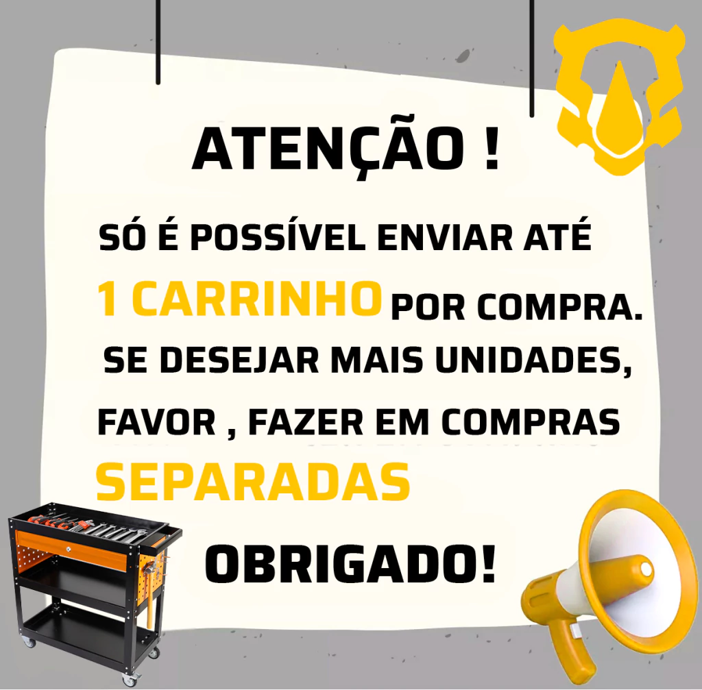 - Mobilidade com Rodas de Qualidade: Equipado com rodas de alta qualidade, o carrinho desliza suavemente pela sua oficina, permitindo que você mova suas ferramentas com facilidade. As rodas também possuem travas para garantir estabilidade quando necessário.