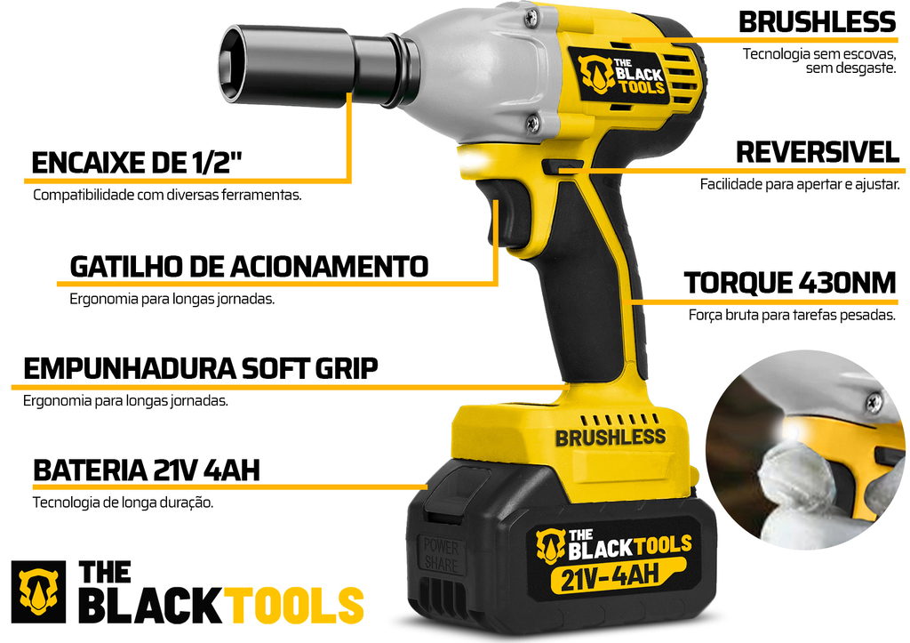- Chave De Impacto A Bateria 21V Bivolt Brushless TB-21I - The Black Tools