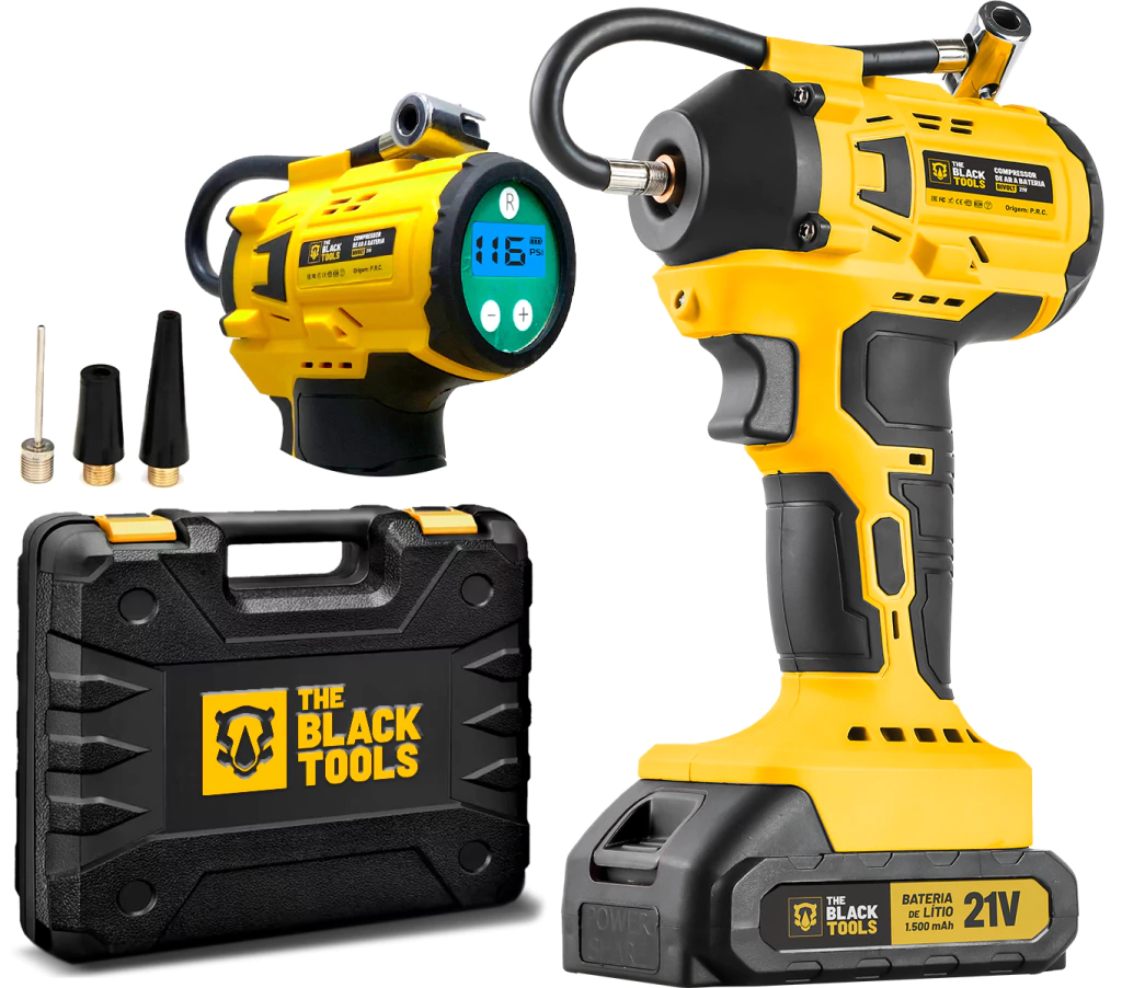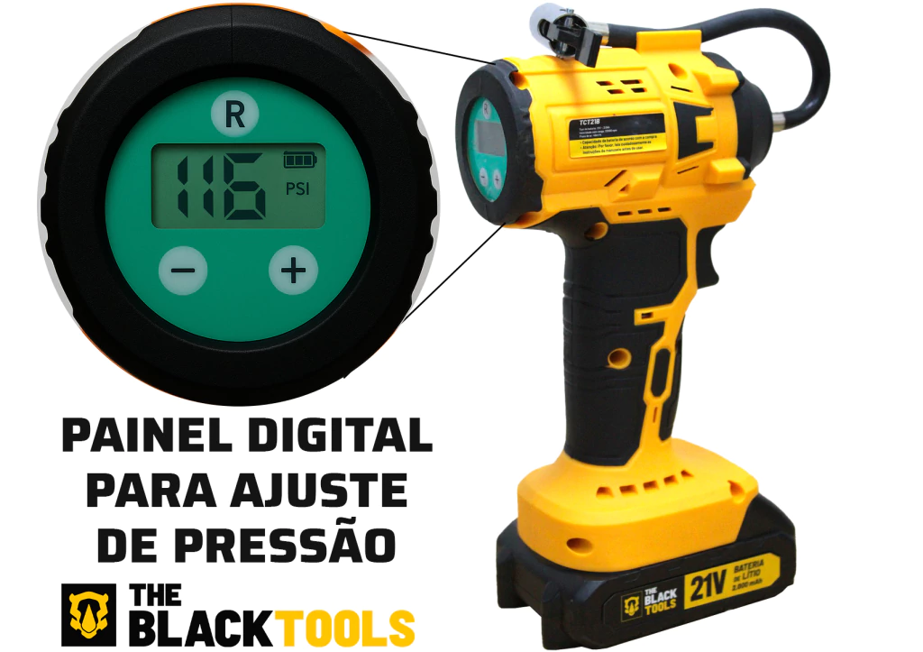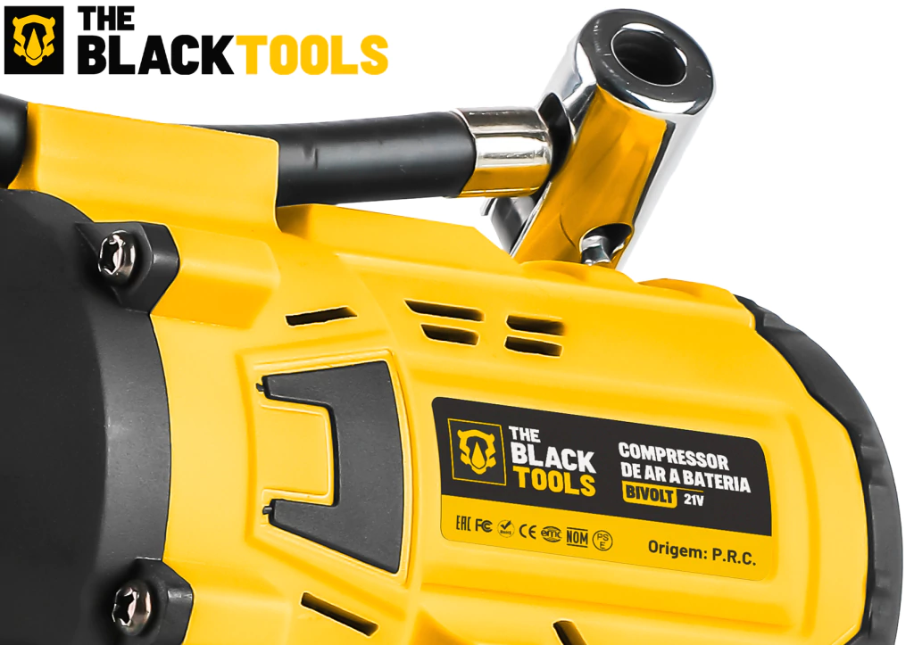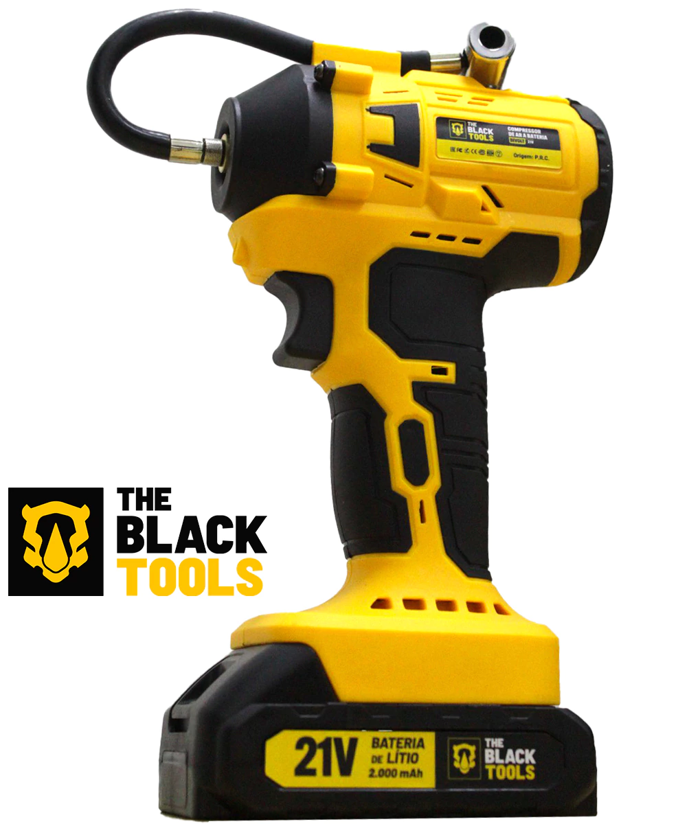 COMPRESSOR DE AR A BATERIA 21V COM PRESSÃO MÁXIMA 8BAR E FLUXO 45M³/H - The Black Tools