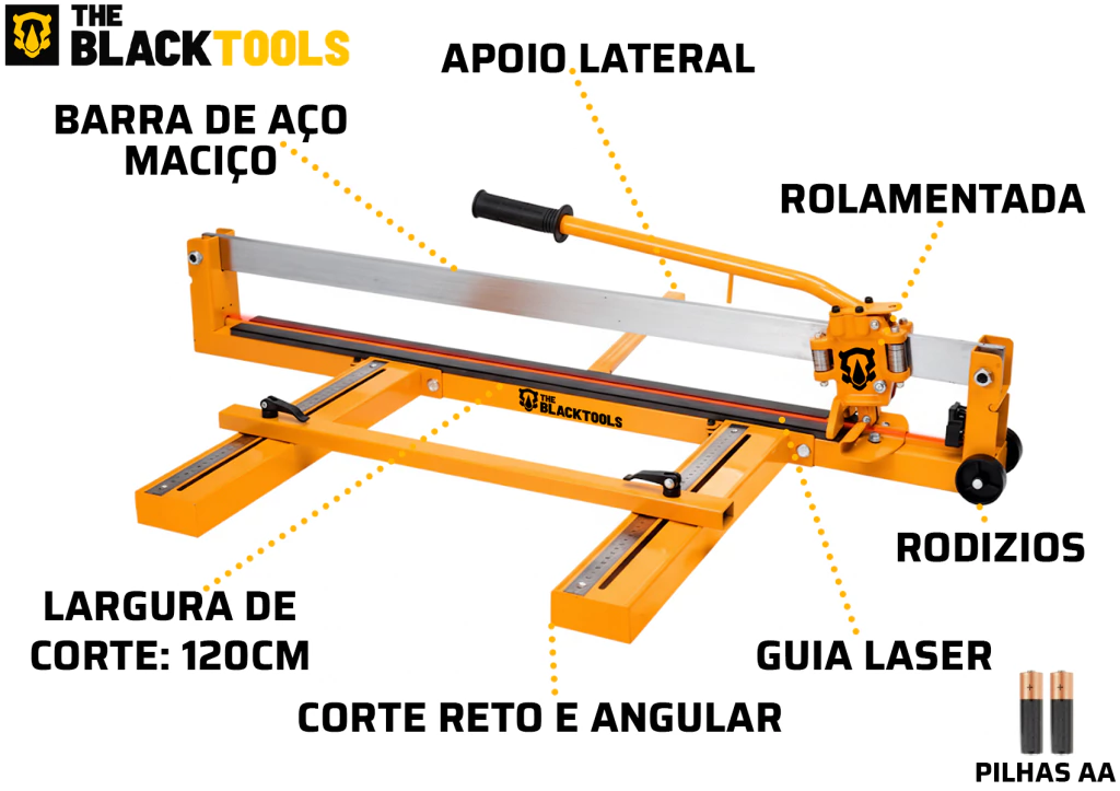 RISCADEIRA PISOS PROFISSIONAL CORTADOR MANUAL 120CM GUIA LASER 18 ROLAMENTOS TTC210 The Black Tools