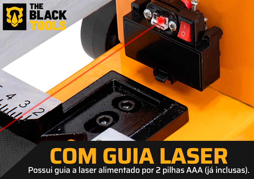 - Guia a laser para maior precisão nos cortes (alimentada por 2 pilhas AAA inclusas)