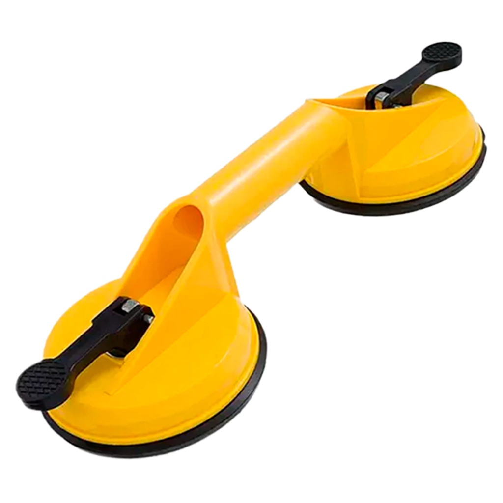 A ventosa dupla é projetada para chapas de vidros e metais, permite transferir e instalar vidros de janelas e vidros duplos, o seu corpo é feito de plástico solido para vidros de até aproximadamente 80 Kg.