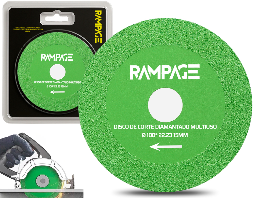 DISCO DE CORTE DIAMANTADO RAMPAGE ULTRA FINO 100MM VERDE - Rampage