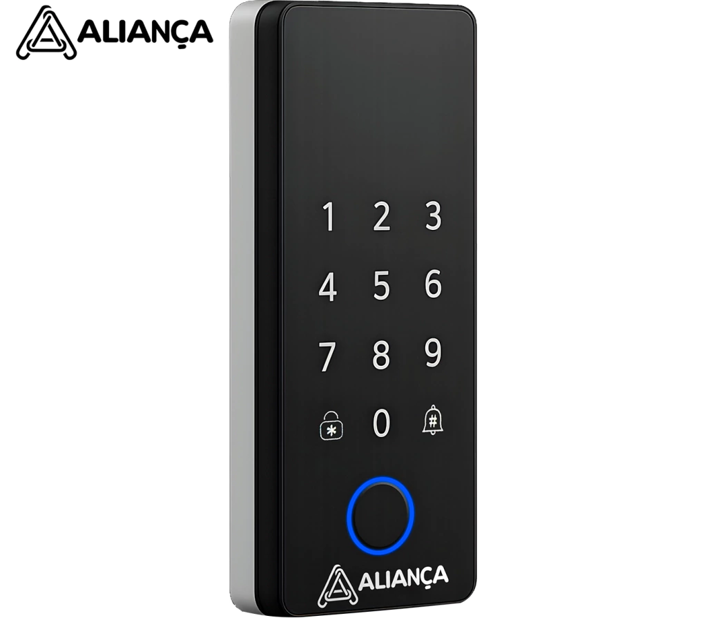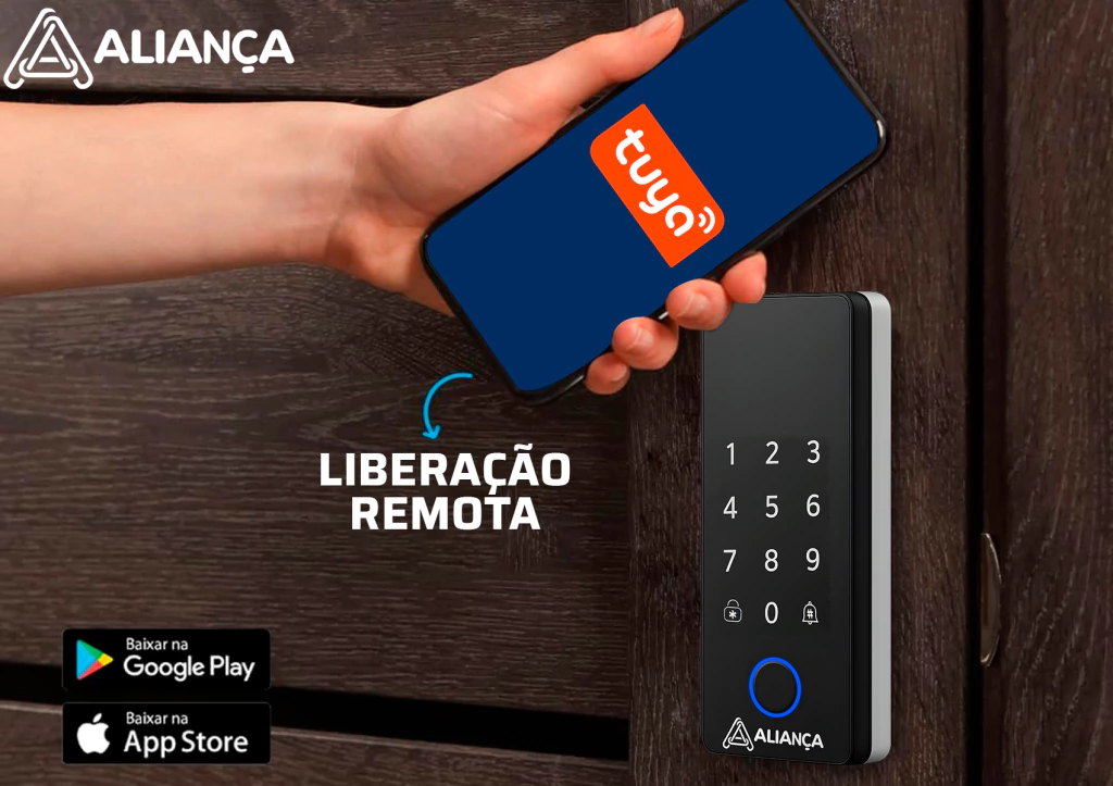FECHADURA DIGITAL DE SOBREPOR MADEIRA COM BIOMETRIA SENHA ALARME DE SEGURANÇA TUYA WI-FI - Aliança