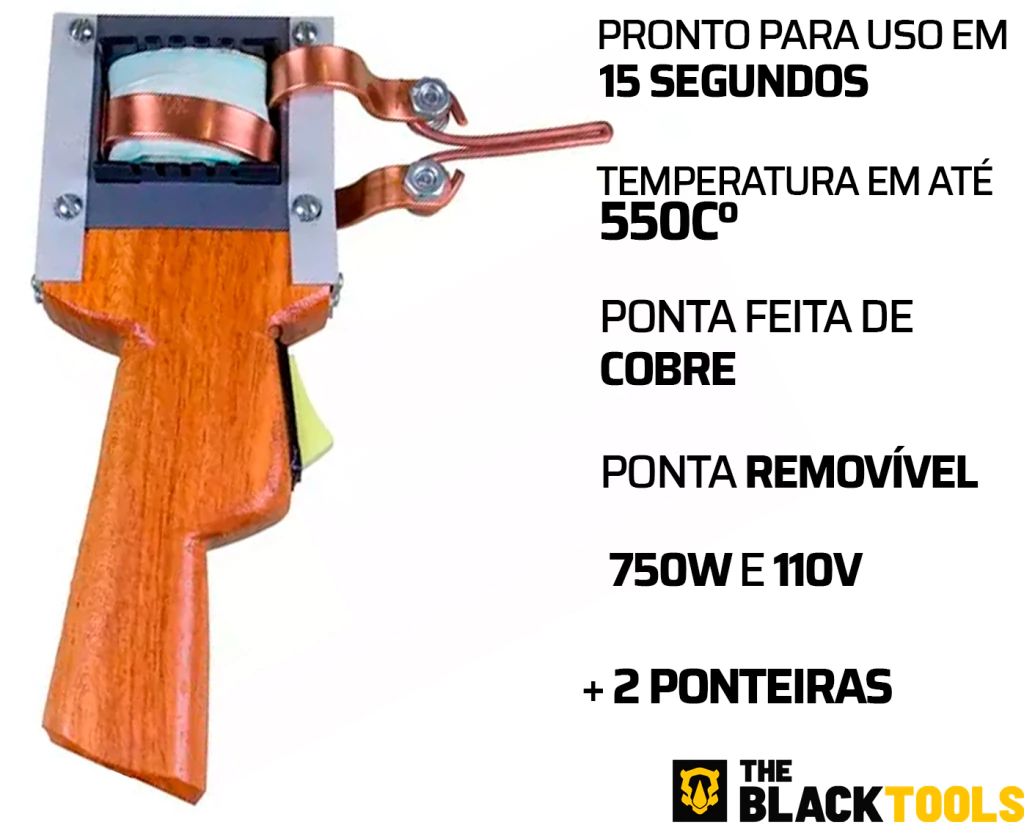 Ferro De Solda Estanhador Profissional Pistola Madeira Envernizada 750W 110V The Black Tools