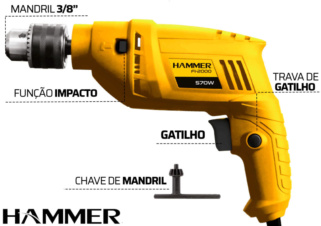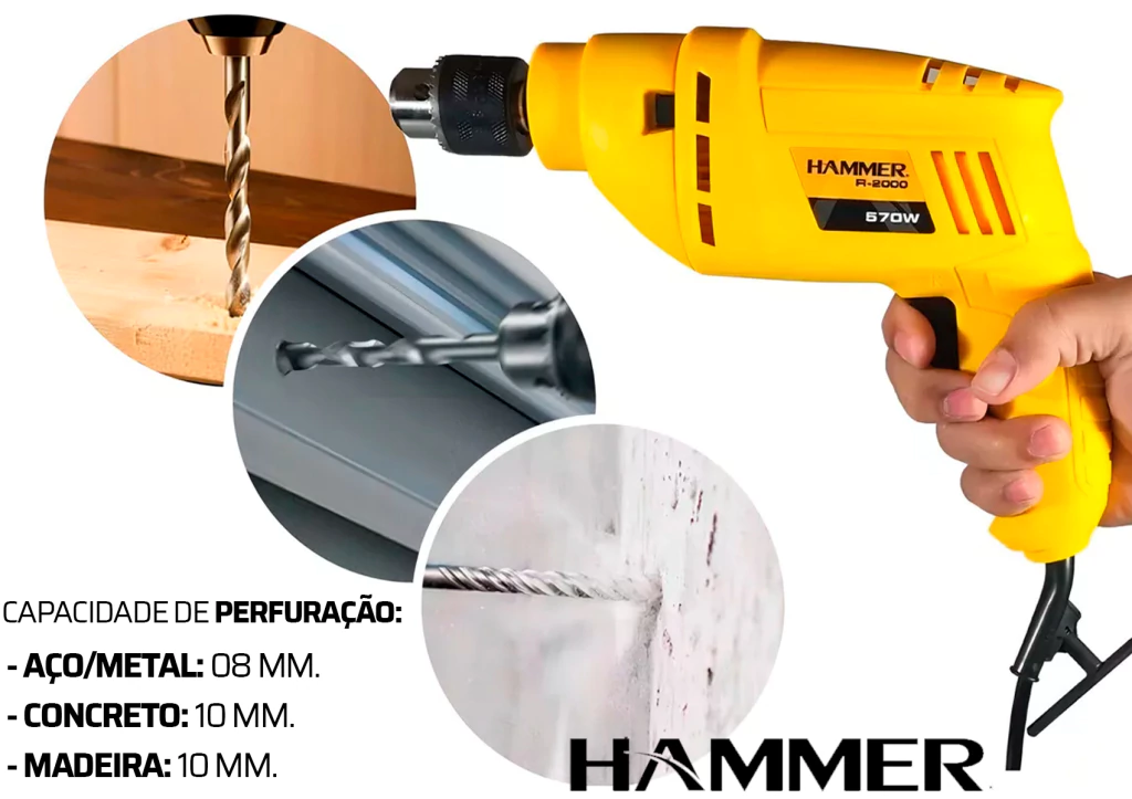 Com esta furadeira elétrica Hammer FI-2000 você poderá executar varias tarefas em diferentes superfícies de uma maneira prática e simples. Sua potência de 570 W vai te oferecer uma grande capacidade da perfuração.