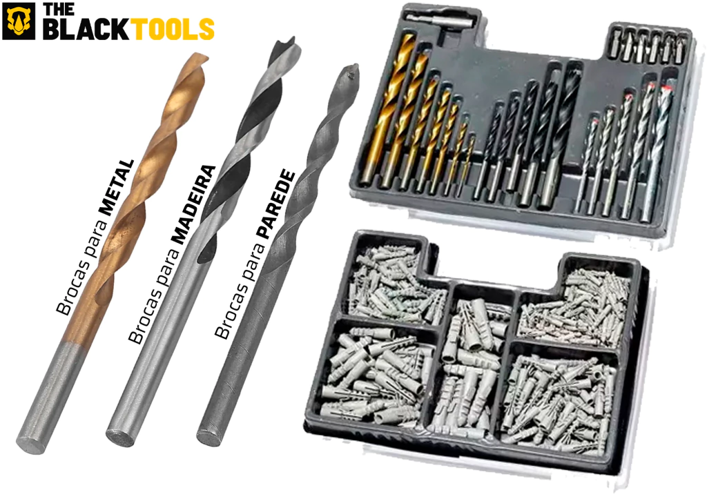 Jogo De Brocas Bits E Buchas Com 300 Peças The Black Tools