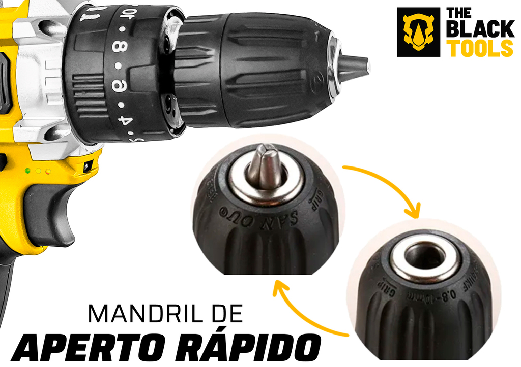 FURADEIRA PARAFUSADEIRA DE IMPACTO SEM FIO A BATERIA 21V 3/8 10MM COM MALETA E ACESSÓRIOS TB-21PKX - The Black Tools