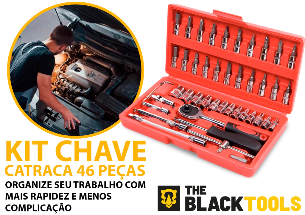 JOGO DE SOQUETES SEXTAVADO INTERCAMBIAVEIS COM CHAVE CATRACA, CONTENDO 46 PECAS, 1/4 POLEGADASO kit de ferramentas com 46 peças é uma maleta com ferramentas uteis para manutenções que podem ser feitas em ambiente doméstico, para veículos, motocicletas e outros.A maleta conta com peças projetadas para o dia a dia, visando a facilidade e prontidão da manutenção sem muito desgaste. A maleta é feita de termo plástico leve que não amassa e comporta muito bem o peso das ferramentas. Já o material das ferramentas é feito de açocromo vanádio, feito para durar.CARACTERÍSTICAS:- O soquete usa aço cromado vanádio de alta qualidade 50 bv30 formação de prensa a frio, torque 50% maior que o de aço carbono, usa processamento de superfície lisa inferior, bom efeito de prevenção de ferrugem.- A cabeça do lote adota materiais cr-v, dureza mais forte, a resistência é mais alta.- Chave de catraca de queda rápida (ajustável positiva e negativa), o recurso de liberação rápida do botão de pressão garante que o soquete seja travado com segurança durante o uso, mas também permite fácil remoção ou troca rápida de soquete- A catraca de 45 dentes de alta qualidade pode melhorar a velocidade de operação.*Pode ser usado em ar condicionado, porca de assento, para-choques, pneus, travas de porta de carro, casa (contém básico), amplamente utilizado em bicicletas, estranguladores abertos, entre outras manutenções.ESPECIFICAÇÕES:- 46 PEÇAS;- Maleta de termo plástico;- Ferramentas de aço cromo vanádio;- Medidas 24x13x5 (C, L, A);- Peso- Encaixes de 1/4 padrão sextavadosLISTA DE EMBALAGEM:- 13 Soquetes ¼”:- 4 mm - 4,5 mm - 5 mm - 5,5 mm - 6 mm - 7mm;- 8 mm - 9 mm - 10 mm - 11 mm - 12 mm - 13 mm - 14 mm;- 21 Soquete com Bits:- Ponta Fenda: 4 mm - 5,5 mm - 7 mm;- Ponta Hexagonal: 3 mm - 4 mm - 5 mm - 6 mm - 7 mm - 8 mm- Ponta Philips: 1 - 2 - 3;- Ponta POZI: 1 - 2 - 3;- Ponta Torx: T10 - T15 - T20 - T25 - T30 - T40;- 03 Chaves Hexagonais L: 1,5 mm - 2 mm - 2,5 mm;- 01 Cabo Fixo ¼”;- 02 Extensão 50 mm (2”) e Extensão 100 mm (4”);- 01 Extensão Flexível 150 mm (6”);- 01 Catraca Reversível ¼” com Quick Release: 15 x 2,7 x 2,3 cm.- 01 Cabo de Força T;- 01 Junta Universal;- 01 Bit Adaptador;- 01 Maleta.EAN: 6918041057997