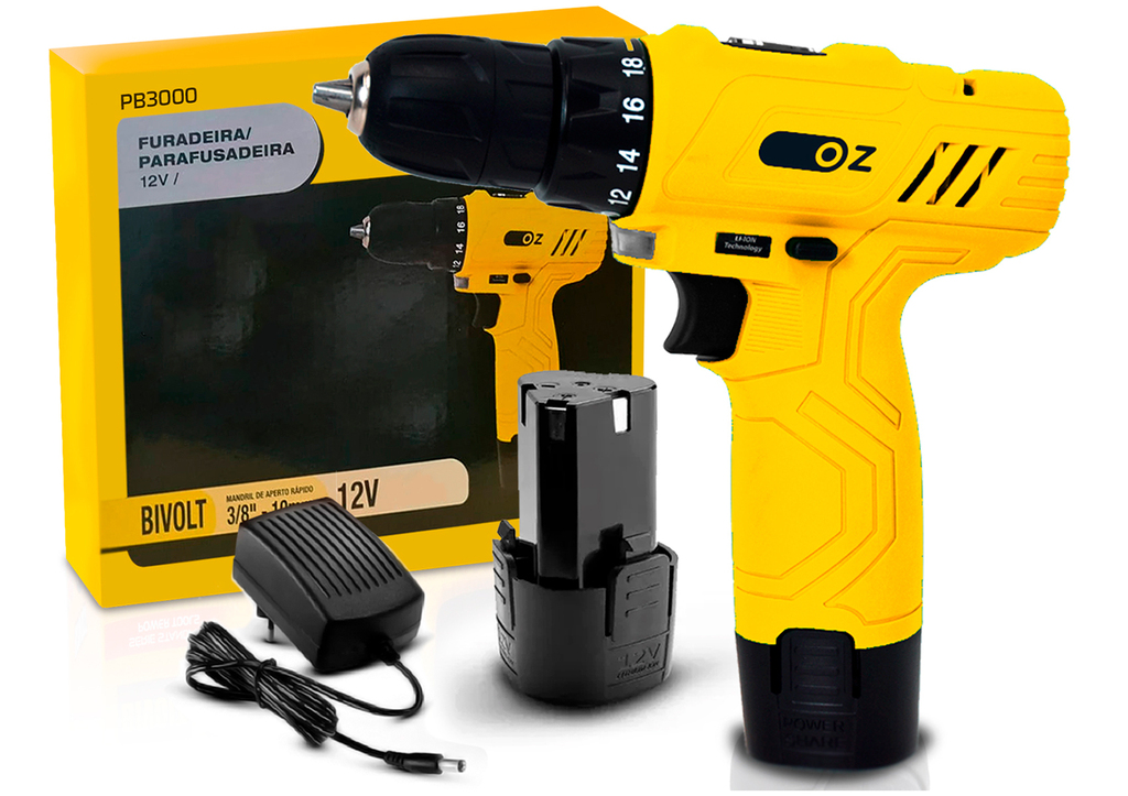 FURADEIRA PARAFUSADEIRA A BATERIA 12V LÍTIO BIVOLT PB3000 Oz