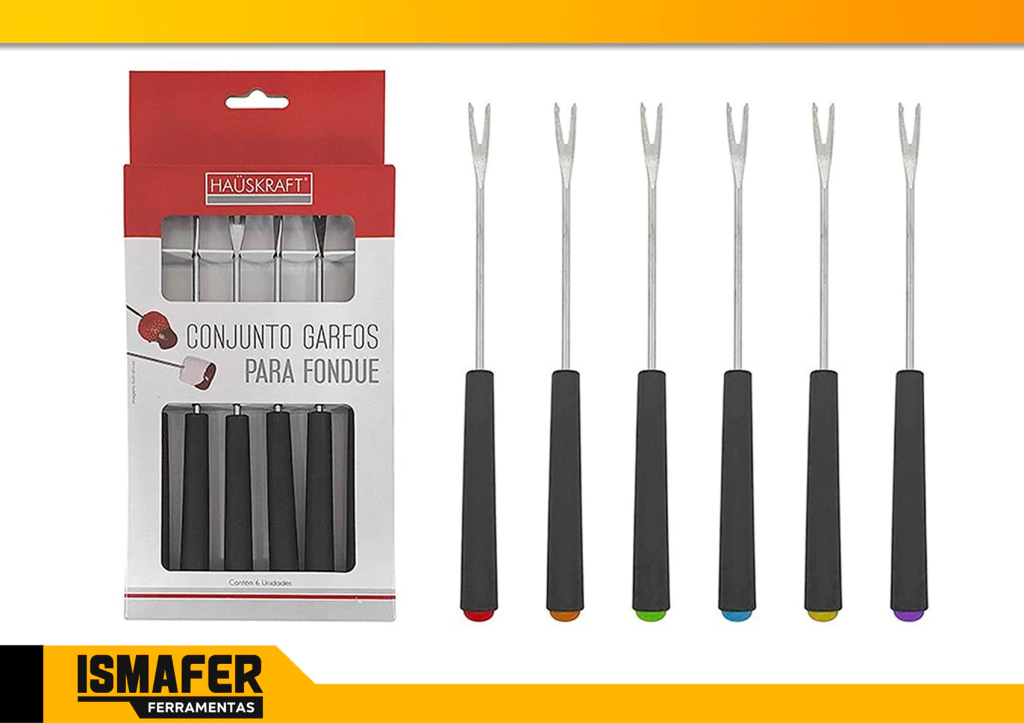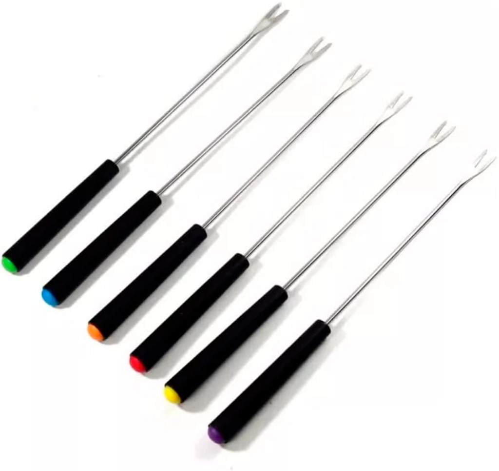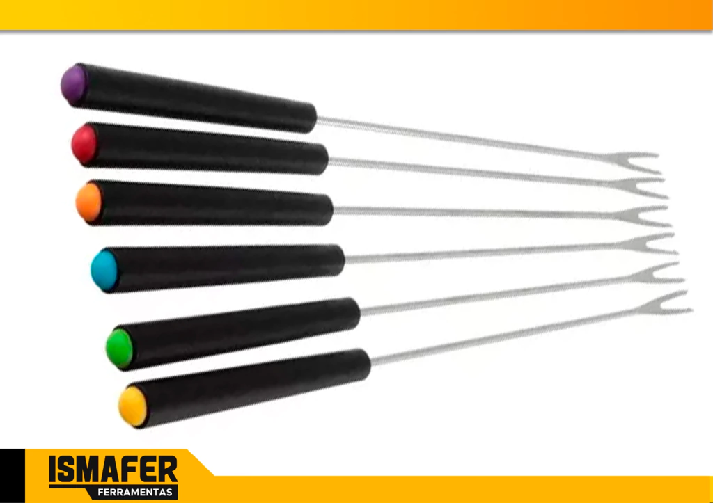 Garfos para Fondue e Petiscos O Conjunto de Garfos para Fondue e Petiscos possui lâminas em aço inox, um material durável, resistente, higiênico e de fácil limpeza. Possui cabos coloridos facilitando a identificação na hora de servir, acompanha uma embalagem com seis unidades. Garante praticidade e beleza ao seu dia a dia. Conjunto Garfos para Fondue Plástico 6 Peças.