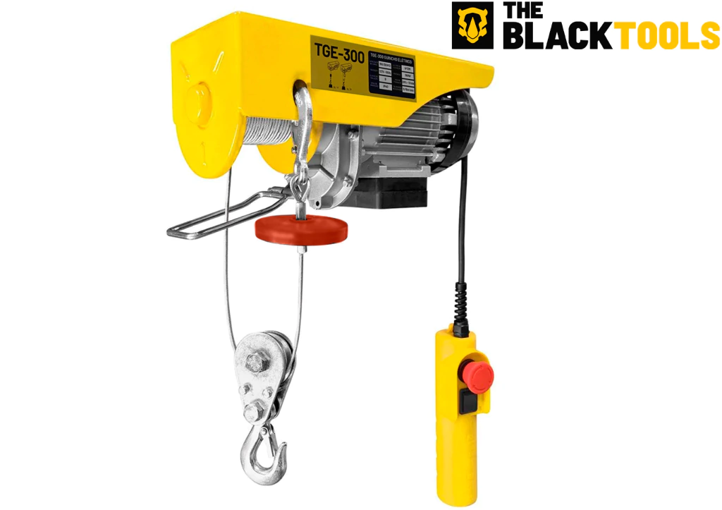 DESCRIÇÃO: O Guincho Elétrico de Coluna TGE-300 da The Black Tools é a solução perfeita para elevação de cargas em oficinas, garagens, construções e diversos outros ambientes que exigem força, segurança e praticidade. Com design robusto, fácil instalação e operação intuitiva, oferece alto desempenho e segurança no manuseio de cargas pesadas.