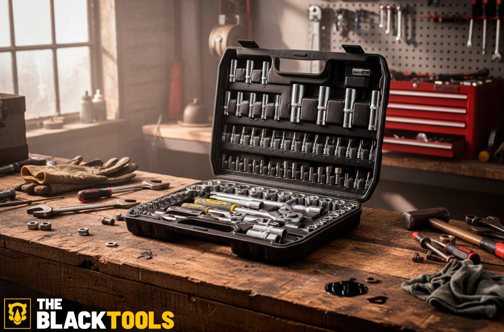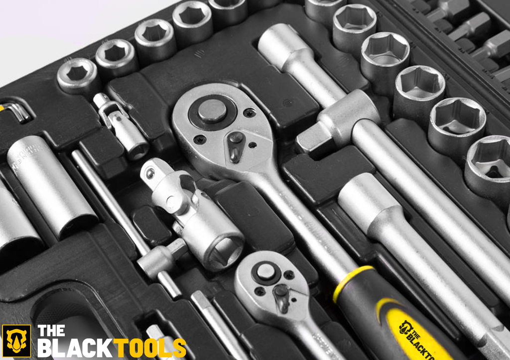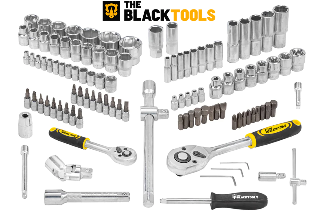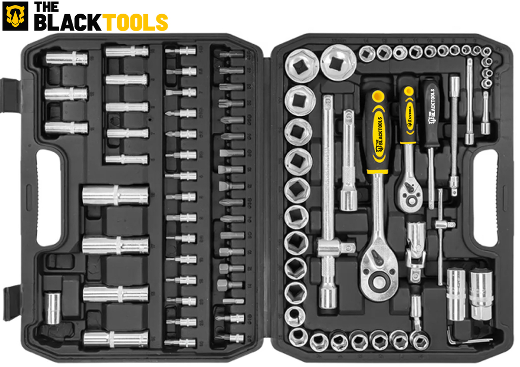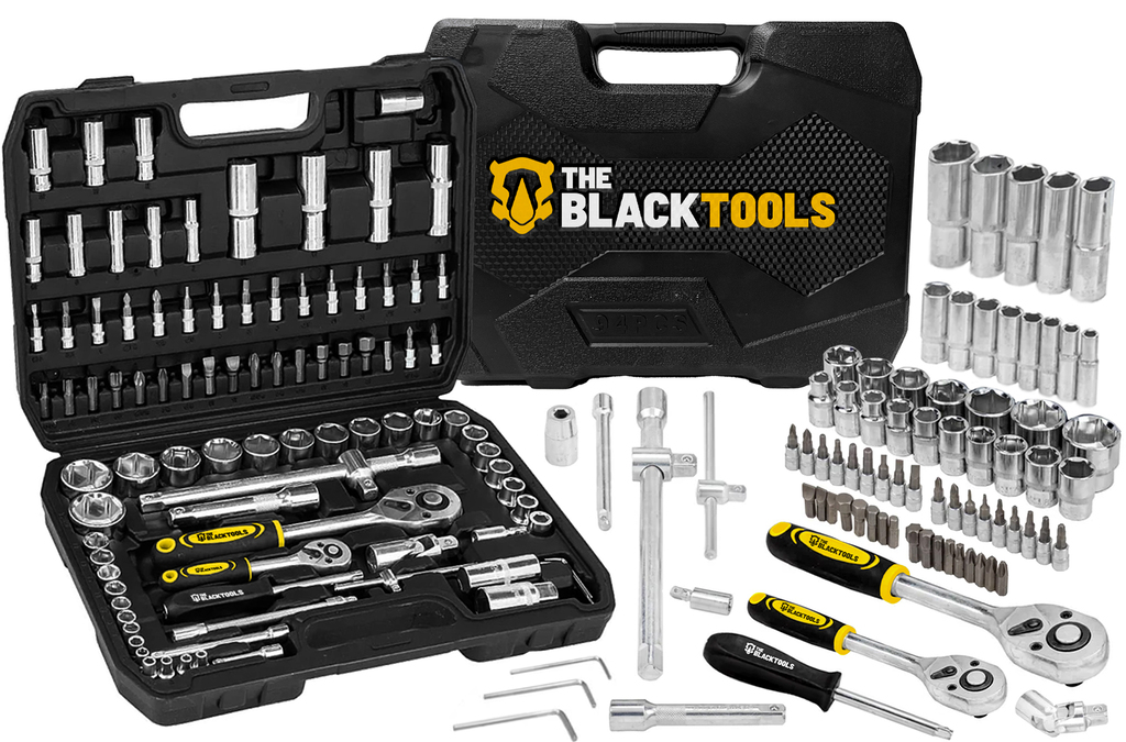 JOGO DE FERRAMENTAS SOQUETES CHAVES E BITS 94 PEÇAS ENCAIXE 1/4"- 1/2" TKF94 - The Black Tools