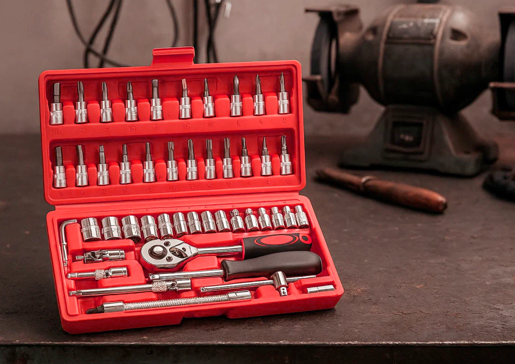- Conjunto completo de 46 peças para diferentes aplicações