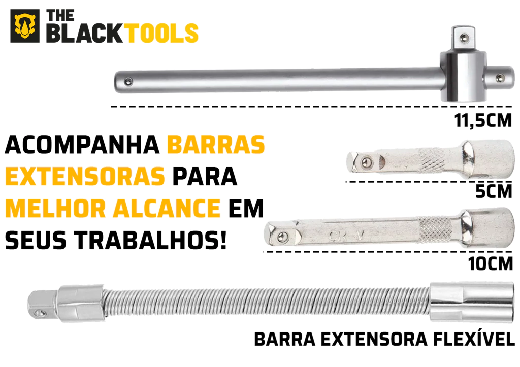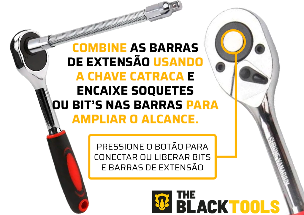 - Ferramentas fabricadas em aço cromo vanádio de alta resistência