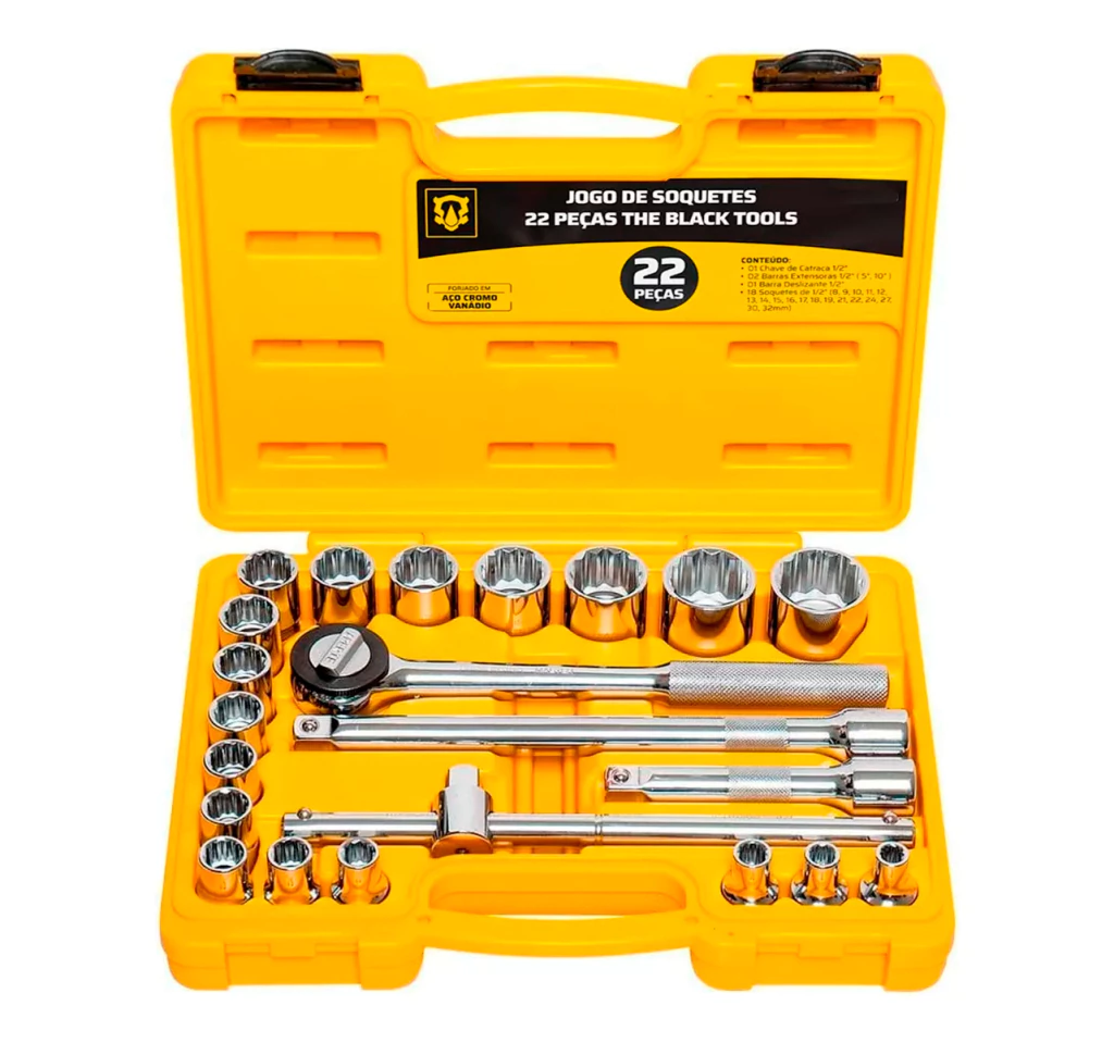 JOGO DE SOQUETES ESTRIADO 22 PCS - BCS022 - The Black Tools