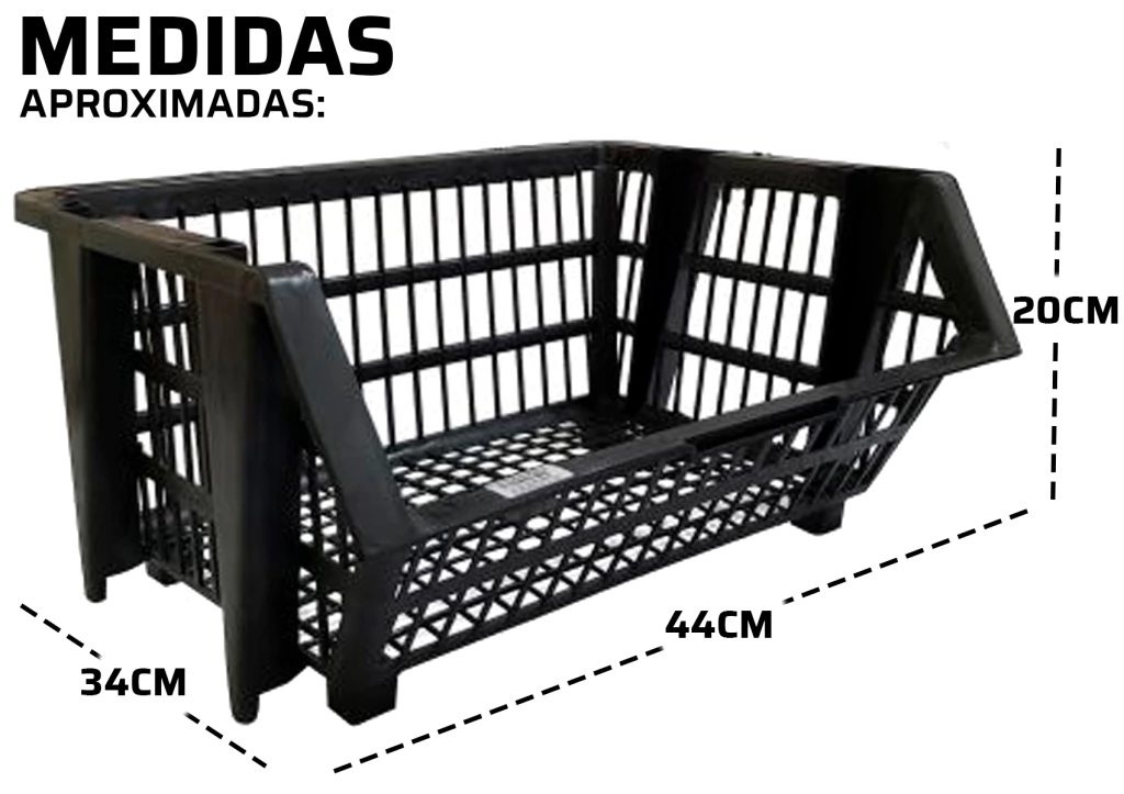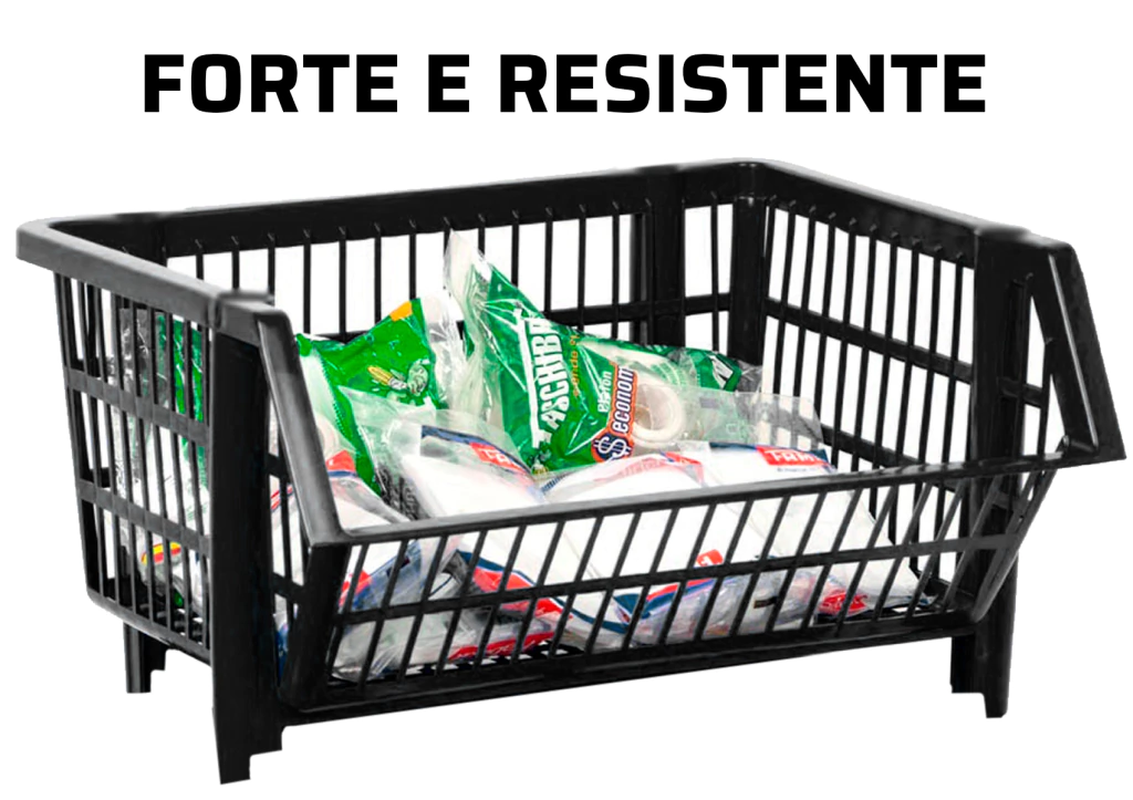 VANTAGENS: - Peso suportado: Até 10 kg. - Produzido em polipropileno. - Maior vão entre os cestos. - Único com porta etiqueta. - Empilha verticalmente.