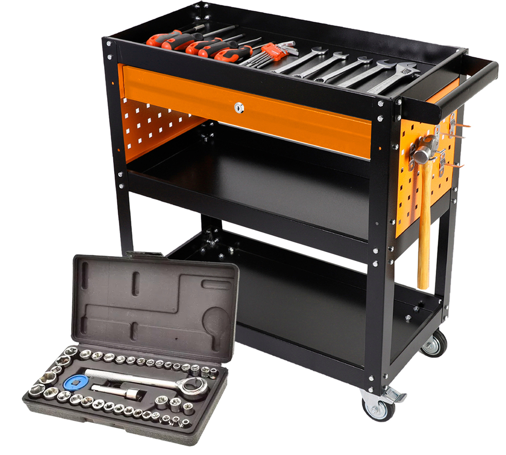 - Design Ergonômico: Este carrinho apresenta um design ergonômico que facilita o acesso às suas ferramentas. Além disso, possui uma gaveta espaçosa para guardar itens de valor e pequenas peças organizadamente.