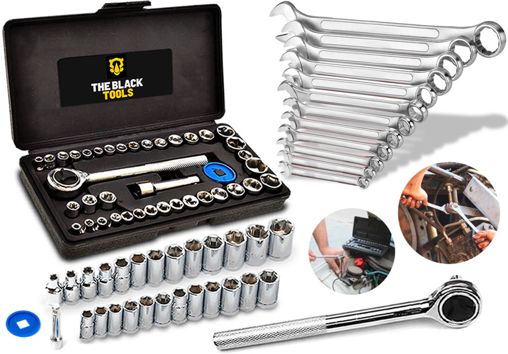 O Kit Jogo Soquete The Black Tools TBT40P com catraca 40 peças, é uma ferramenta essencial para quem busca praticidade e eficiência em reparos e manutenções;