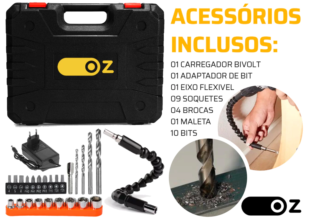 A furadeira a bateria de 21V é uma ferramenta poderosa e versátil projetada para atender às necessidades de perfuração em diversos materiais.Com um design ergonômico e compacto, proporciona conforto durante o uso prolongado e facilita o manuseio em espaços restritos.ITENS INCLUSOS:- 01 Parafusadeira PB6500K- 10 Bits de parafuso.- 01 Carregador Bivolt.- 01 Baterias.- 04 Brocas. - 01 Conector de broca de parafuso FICHA TÉCNICA:- Tipo de bateria: Bateria de lítio.- Mandril: Mandril de aperto rápido.- Controle de torque ajustável: Sim.- Tempo de carga: Cerca de 1 hora.- Velocidade: Velocidade variável.- Design: Ergonômico e compacto.- Função de impacto: Possuí.- Tensão da bateria: 21V.APLICAÇÕES:- Ideal para perfuração em diversos materiais, como metal, madeira e plástico.- Profissionais da construção, marcenaria, bricolagem e uso doméstico.