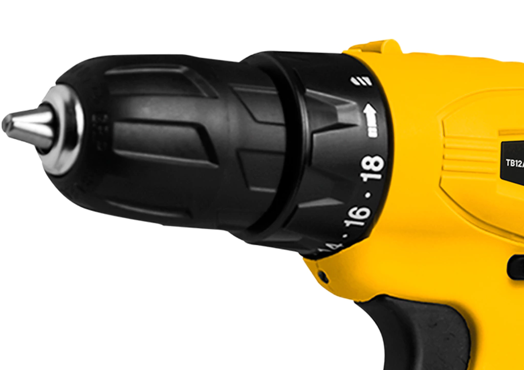 A Parafusadeira/Furadeira The Black Tools TB12A tem design ergonômico, mandril de 3/8" e luz de LED para iluminação, ideal para alcançar cantos menores e com pouca luz.