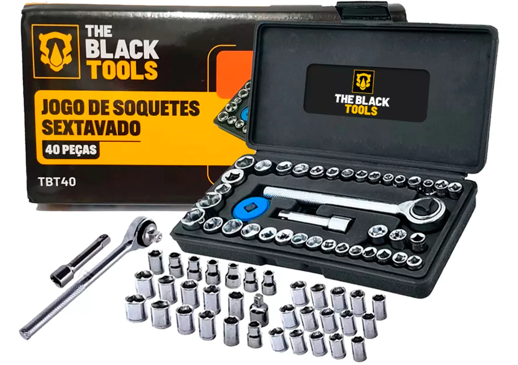 JOGO CHAVE SOQUETE C/CATRACA REVERSÍVEL 40 PEÇAS - The Black Tools
