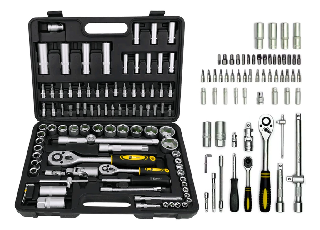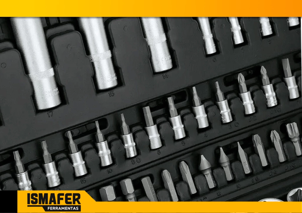 VANTAGENS: - O jogo de soquetes e catraca composto por 94 peças de excelente qualidade em ao cromo vanádio, proporcionando maior durabilidade e resistência. - Acompanha estojo de plástico para armazenamento das ferramentas.