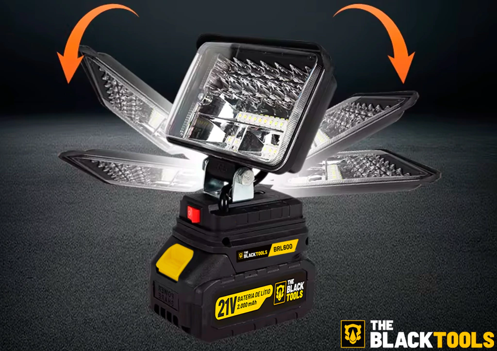 LANTERNA REFLETOR HOLOFOTE PORTÁTIL RECARREGÁVEL 18W COM BATERIA 21V 127/220V BIVOLT BRL600 The Black Tools