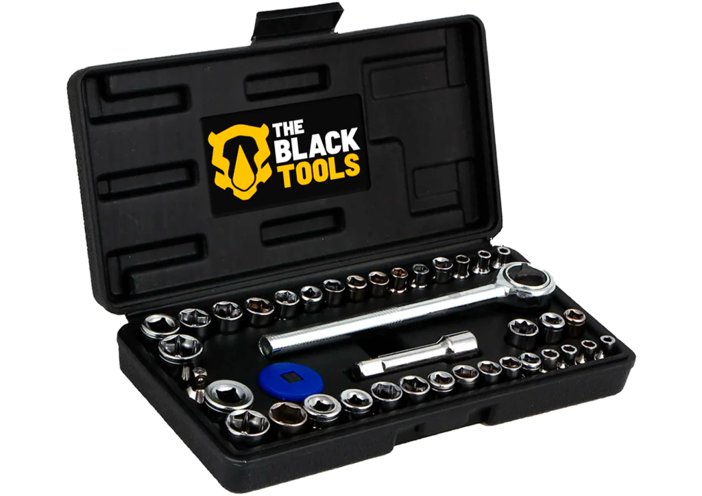 O Kit Jogo Soquete The Black Tools TBT40P com catraca 40 peças, é uma ferramenta essencial para quem busca praticidade e eficiência em reparos e manutenções;