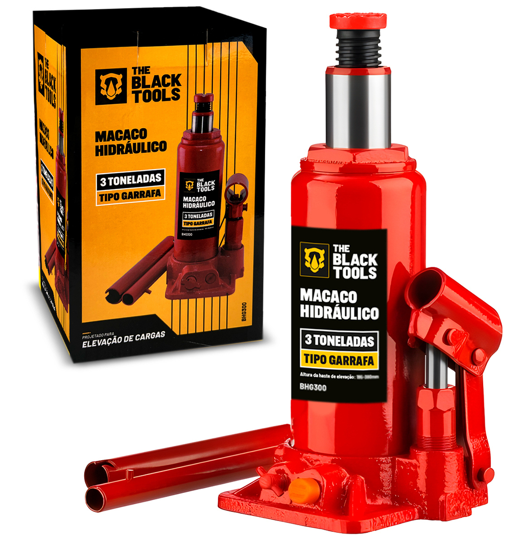 Macaco Hidráulico Tipo Garrafa 3 Toneladas 18cm A 35cm Bhg300 The Black Tools