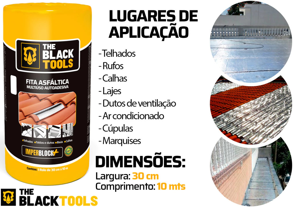 A Fita asfáltica auto adesiva e uma membrana asfáltica com alto teor de elastômeros, proporcionando elevada adesividade. Protegida com um filme de alumínio que permite sua exposição a intempéries e aos raios solares, sendo de fácil aplicação, na qual proporcionam medidas imediatas para solucionar problemas como telhas quebradas, infiltrações e goteiras.