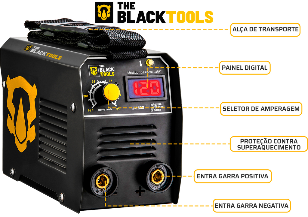MAQUINA DE SOLDA ELETRICA INVERSORA COM VISOR DIGITAL 120A IF150D - The Black Tools