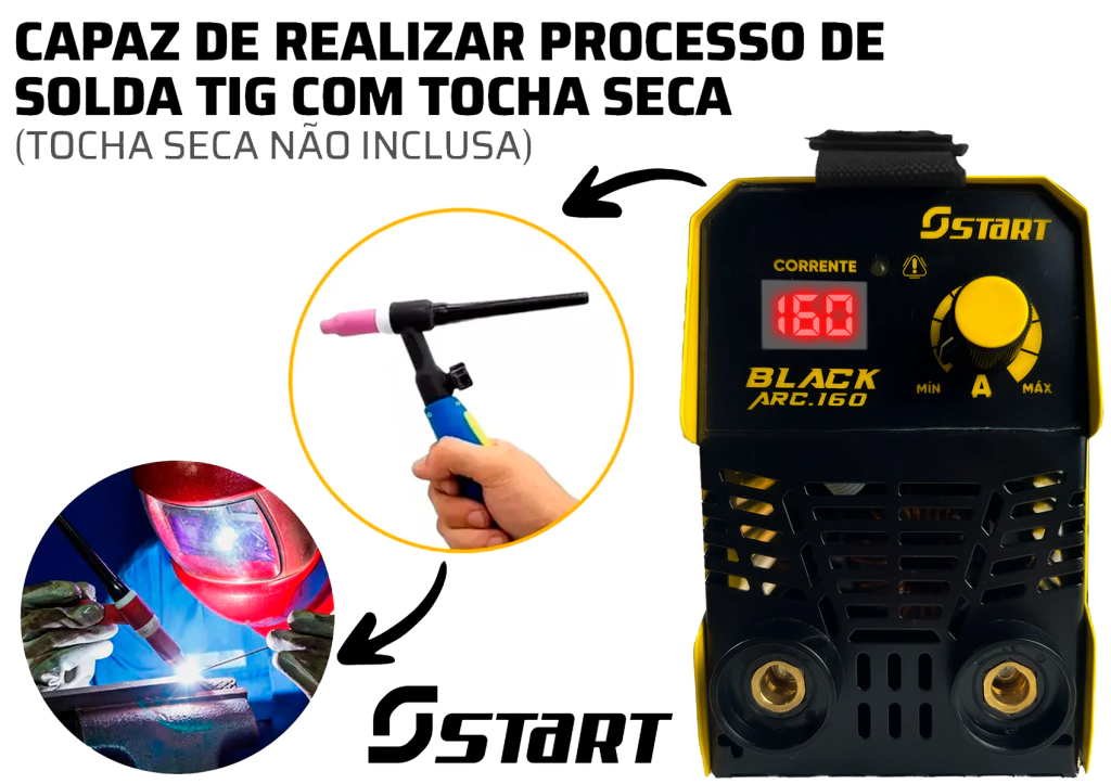 MÁQUINA DE SOLDA INVERSORA PARA SERRALHEIRO 220V TIG ELETRODO MMA BLACK ARC 160A - Start