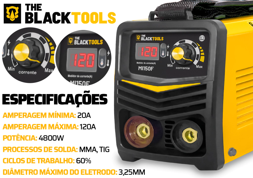 MAQUINA DE SOLDA ELETRICA INVERSORA COM VISOR DIGITAL MI150F 120A - The Black Tools