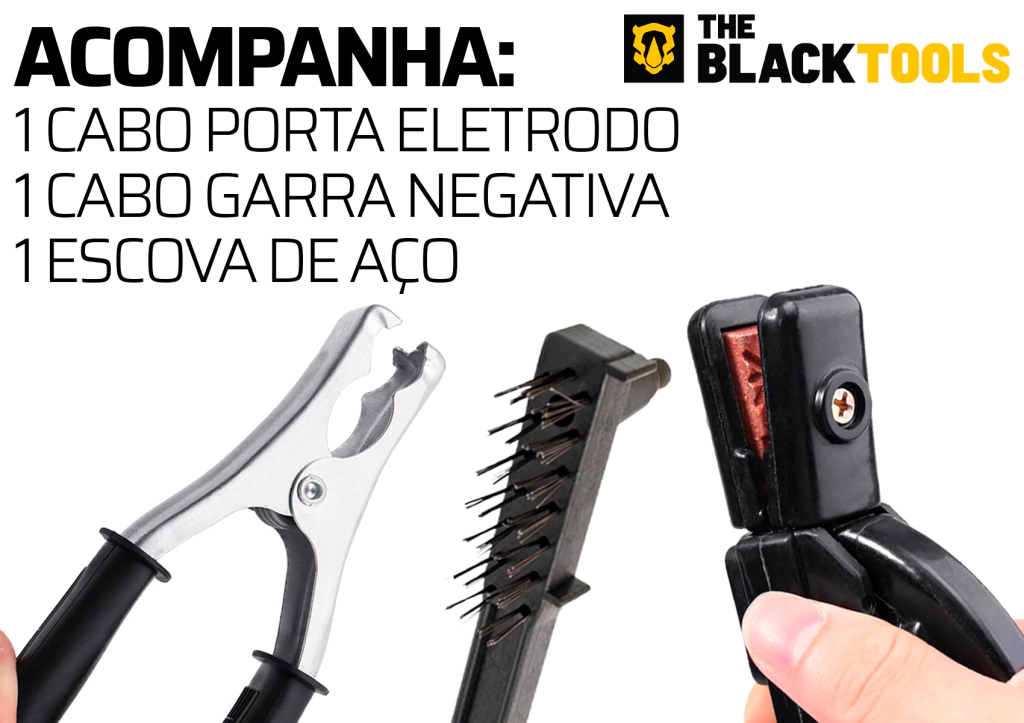 ITENS INCLUSOS: - Alça para transporte; - Cabo Porta Eletrodo; - Fonte Inversora; - Escova De Aço: - Inversora.