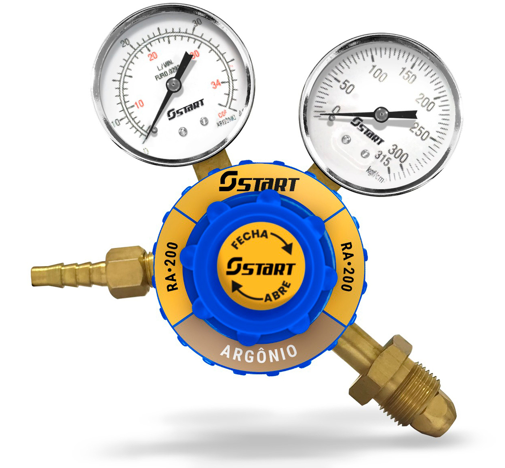 - Manômetro de argônio utilizados para trabalhos leves e médios, com ajuste da pressão de saída ou da vazão;