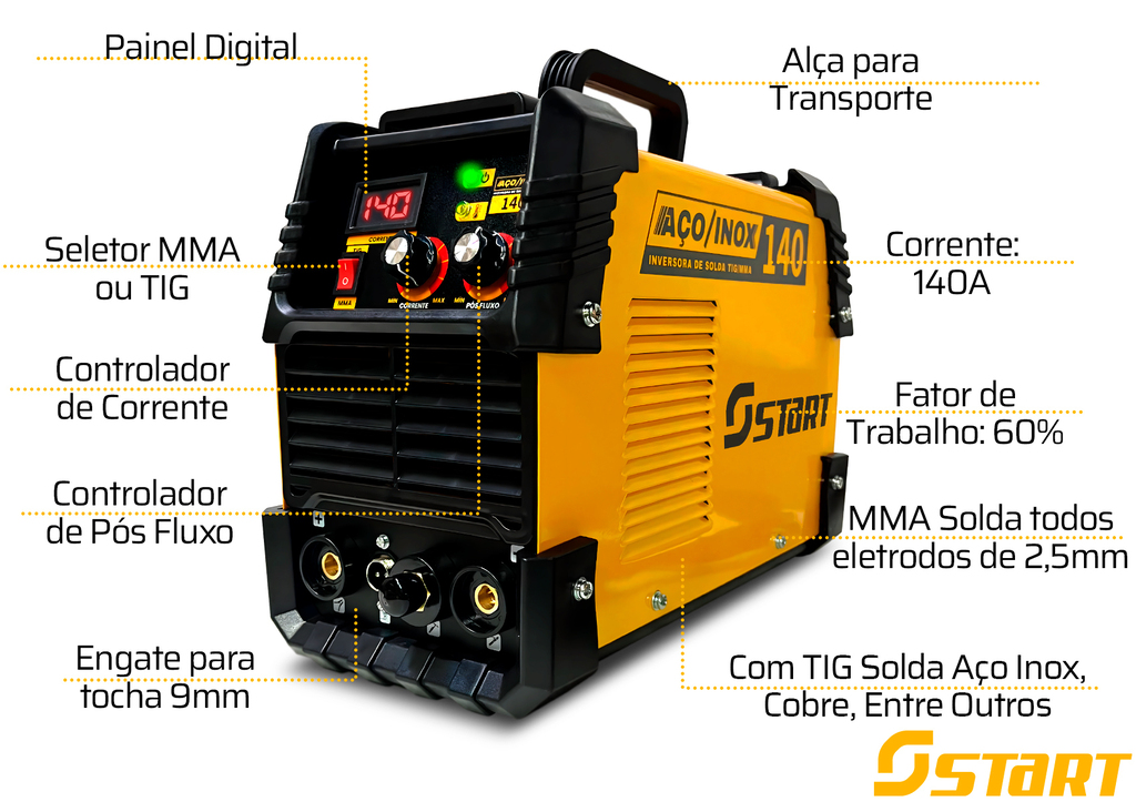 MÁQUINA INVERSORA DE SOLDA MAXTIG 140 TIG/MMA 140A 220V - Start