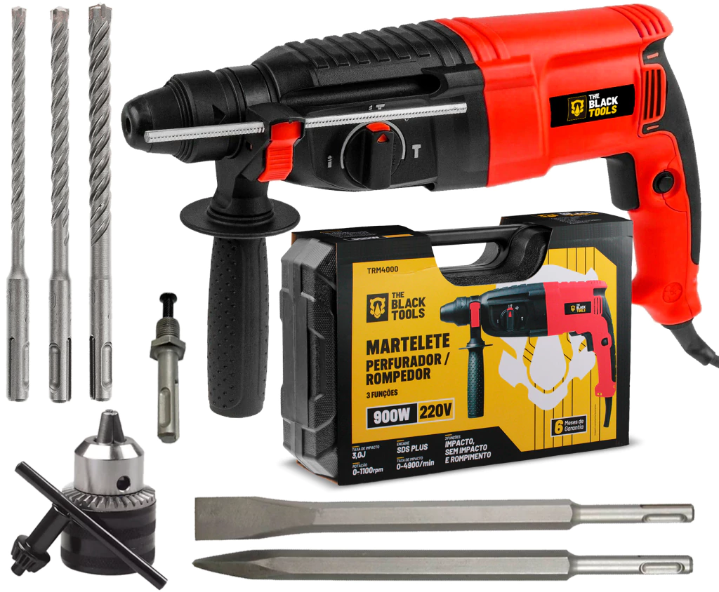 MARTELETE PERFURADOR E ROMPEDOR 900W 1100RPM SDS PLUS TRM-4000 - The Black Tools