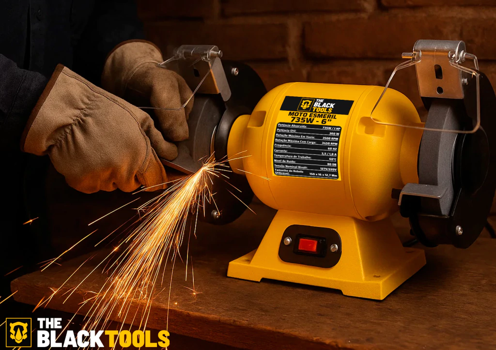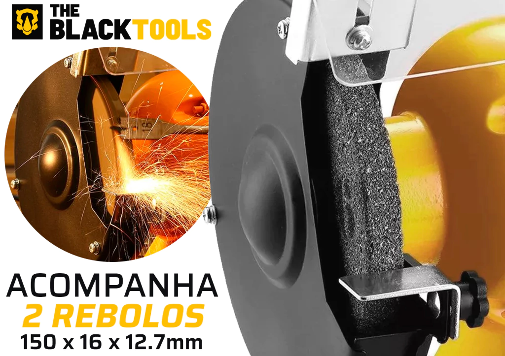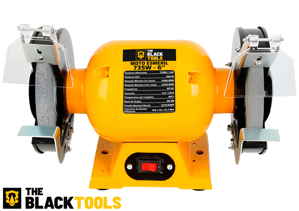 MOTO ESMERIL DE BANCADA 6 POLEGADAS 735W BIVOLT COM 2 REBOLOS TME2000 - The Black Tools
