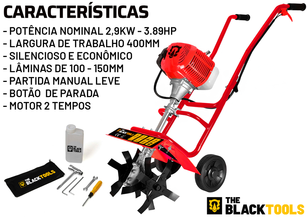 MOTOCULTIVADOR A GASOLINA 400MM TPF1000 3,8HP 2 TEMPOS – THE BLACK TOOLS