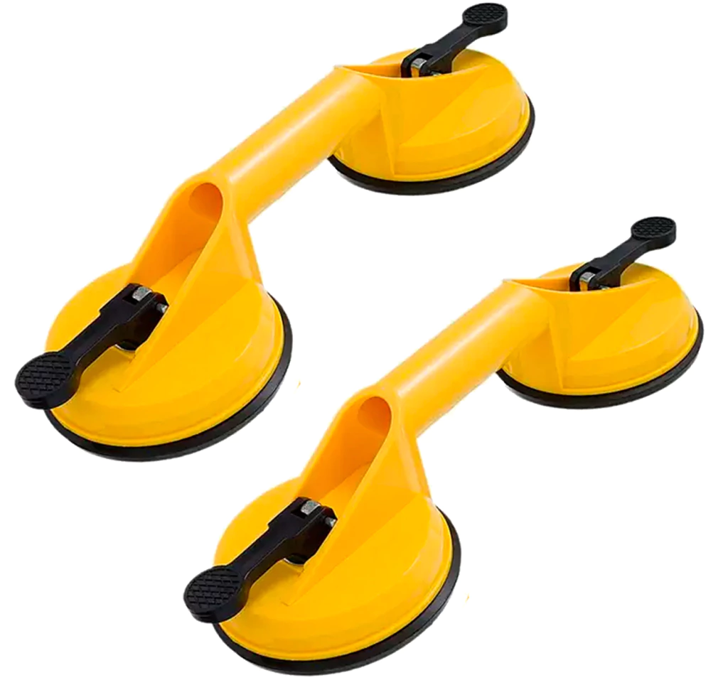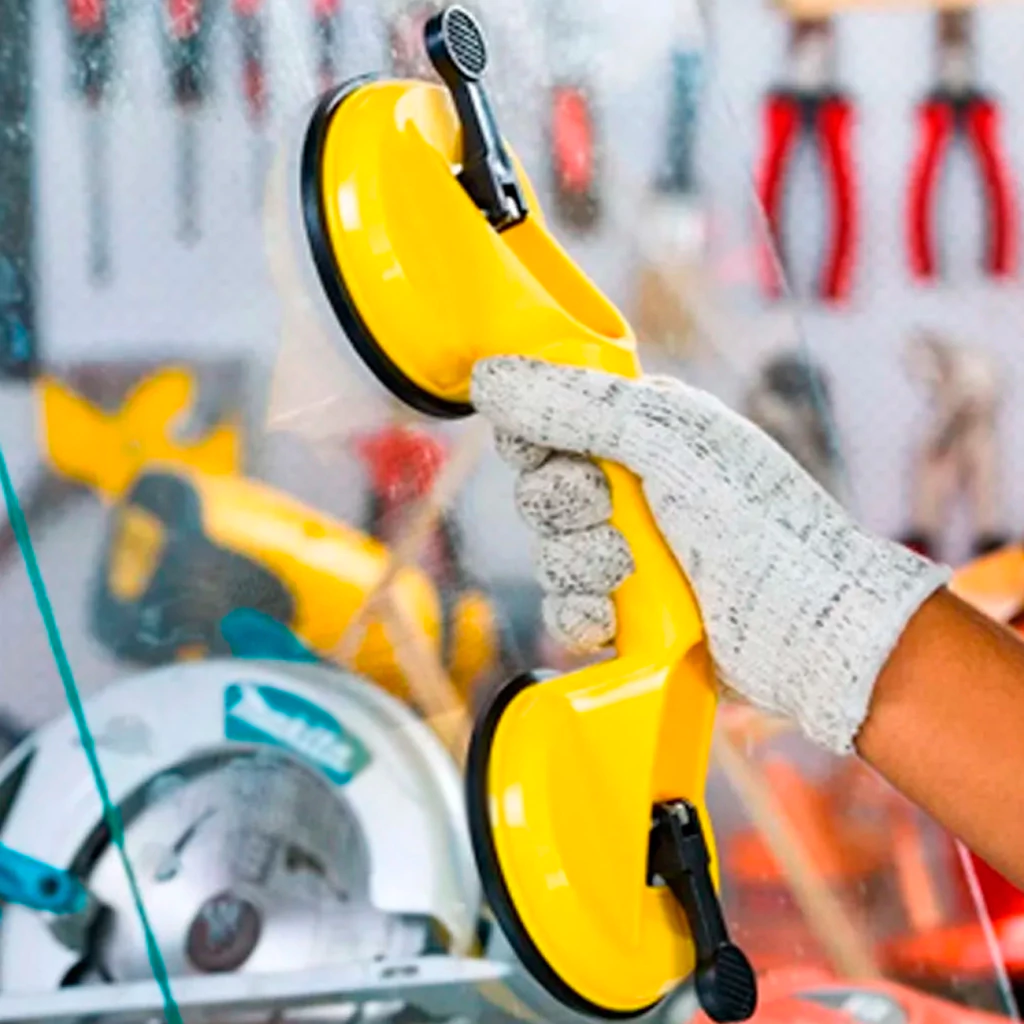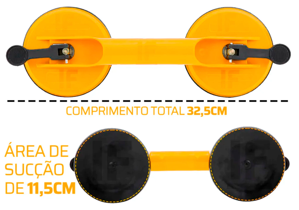 A ventosa dupla é projetada para chapas de vidros e metais, permite transferir e instalar vidros de janelas e vidros duplos, o seu corpo é feito de plástico solido para vidros de até aproximadamente 80 Kg.
