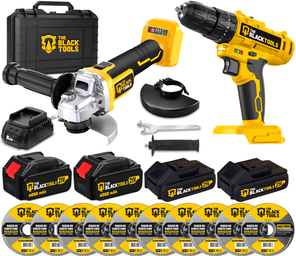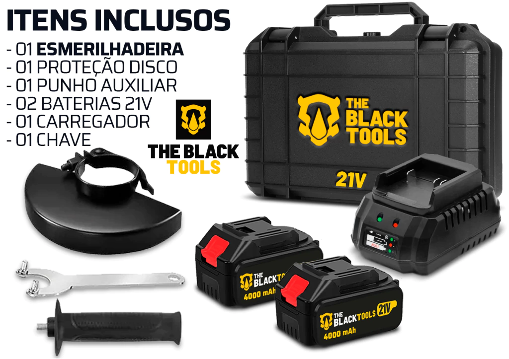 ESMERILHADEIRA ANGULAR BIVOLT 02 BATERIAS 21V - TCA21BT - The Black Tools