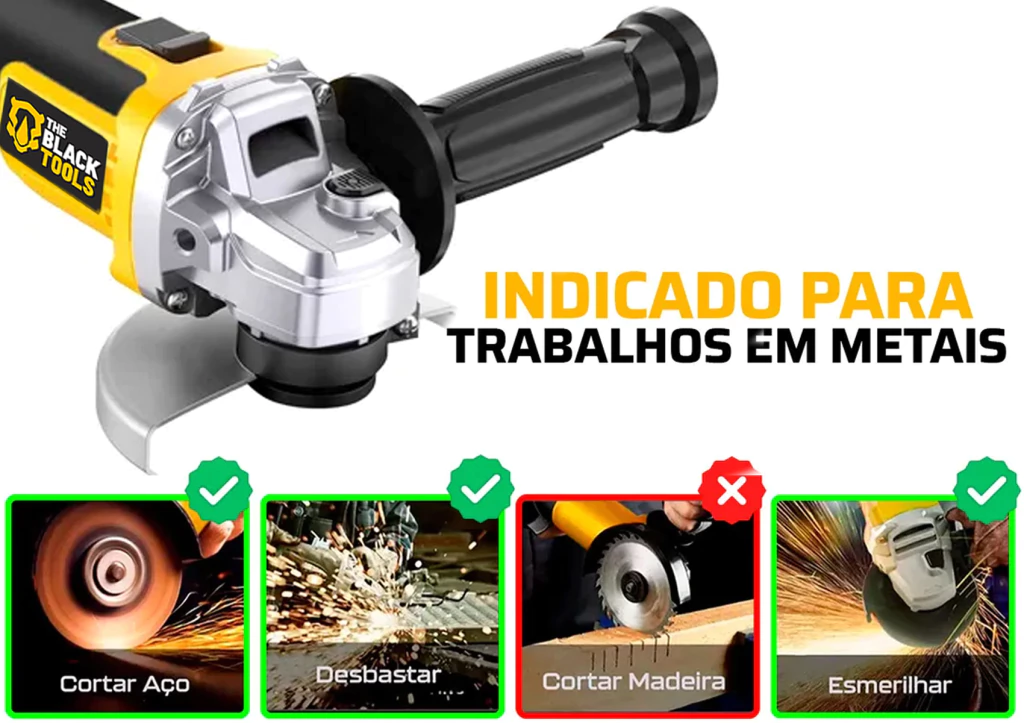 A Esmerilhadeira Angular A Bateria TCA21BT da The Black Tools, é destinada para uso em operações de esmerilhamento e corte; Ideal para o desbaste em peças metálica, acabamentos sobre soldas, remoção de rebarbas de peças fundidas, limpeza de superfícies enferrujadas ou com tinta;
