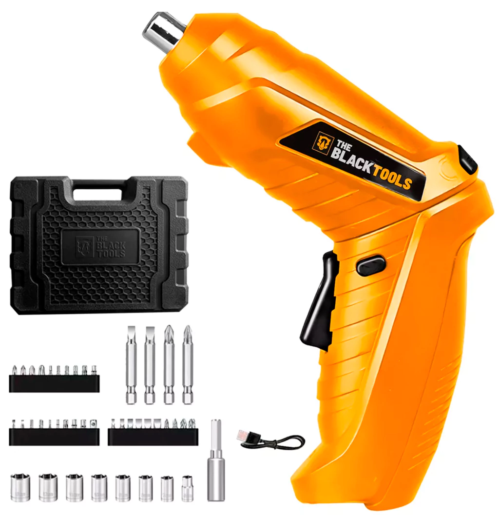 Imagine como seria fácil montar um móvel ou realizar pequenos reparos em sua casa com uma Mini Parafusadeira Portátil da The Black Tools. Com a Mini Parafusadeira Portátil, você pode concluir tarefas de manutenção de maneira rápida e fácil. Não perca mais tempo e esforço tentando apertar parafusos manualmente.