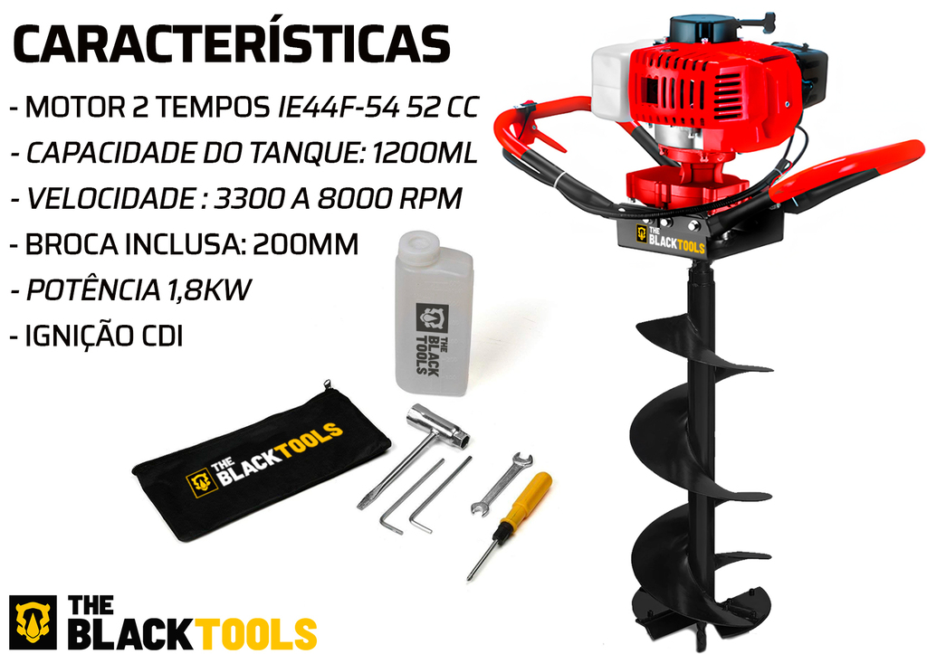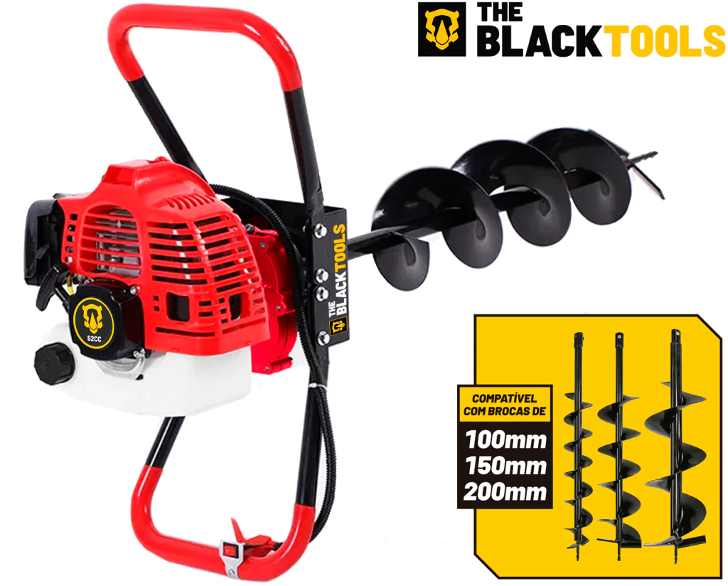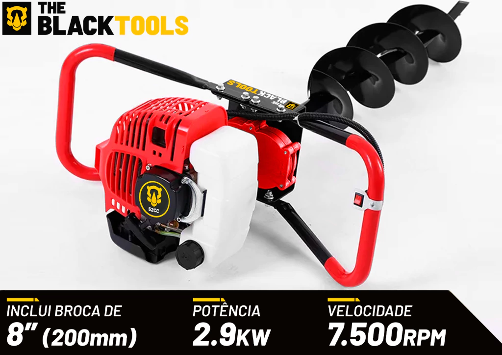 PERFURADOR DE SOLO A GASOLINA 2T 52CC BROCA DE 200X800MM TPF2000 THE BLACK TOOLS