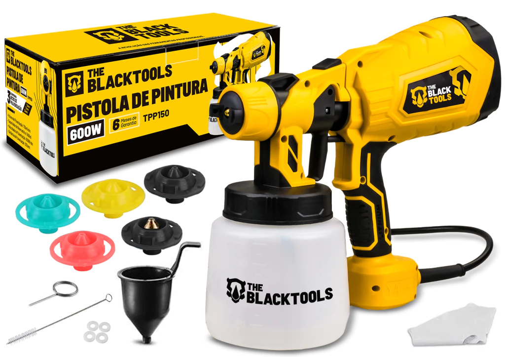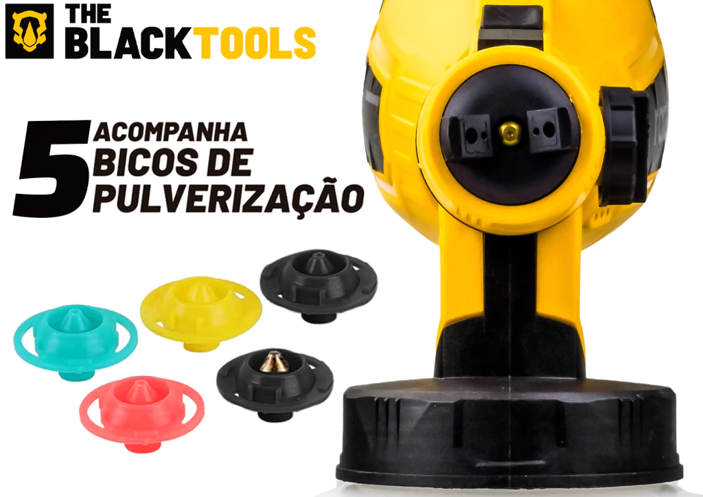 Pistola de Pintura e Pulverizadora Elétrica Portátil HVLP 1.25L 600W com 5 Bicos - The Black Tools TPP150