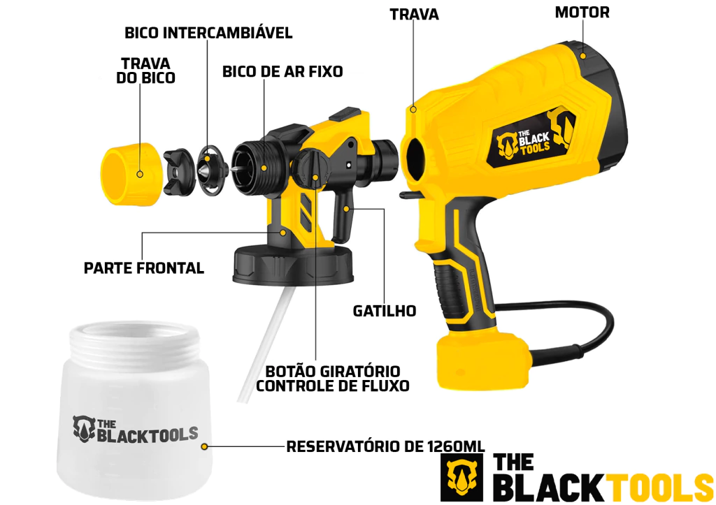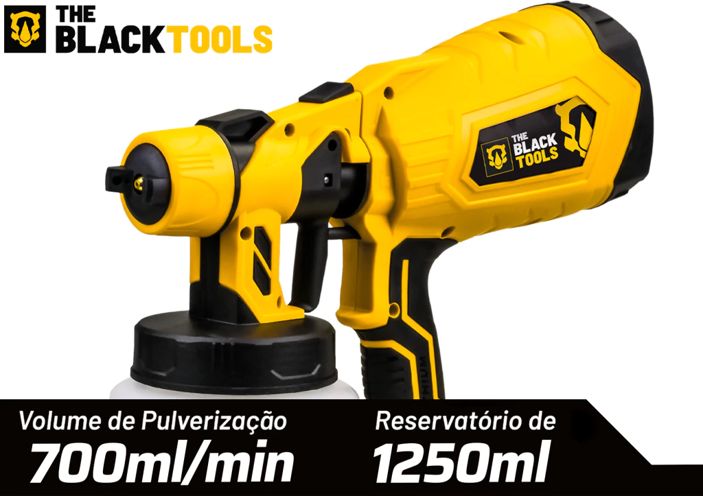 Pistola de Pintura e Pulverizadora Elétrica Portátil HVLP 1.25L 600W com 5 Bicos - The Black Tools TPP150